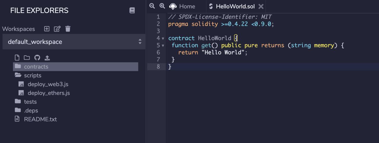 }今回あなたが作ったのは、get()を実行すると”Hello World”という文字を返すファンクションを持つスマートコントラクトだったのです。