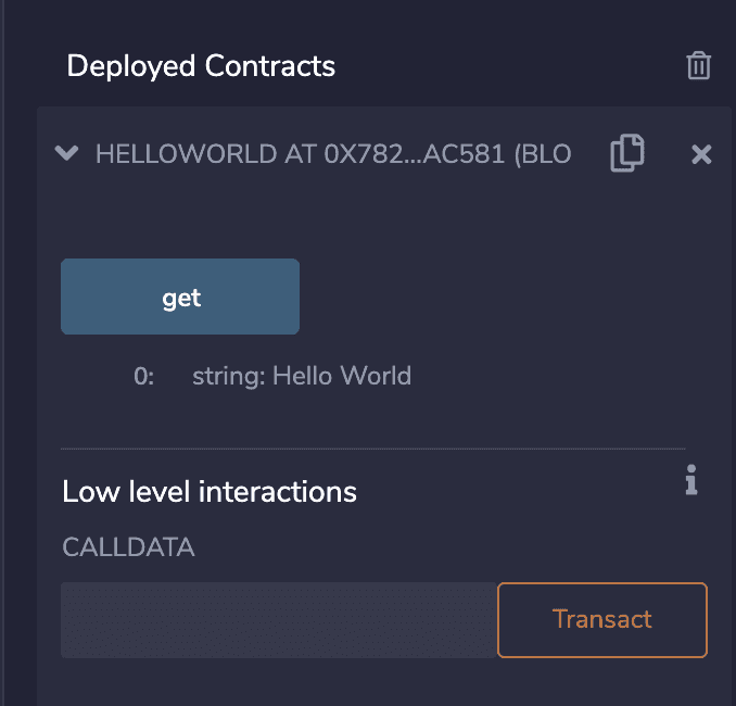 - Remix の CONTRACT で HelloWorld が選択されていること